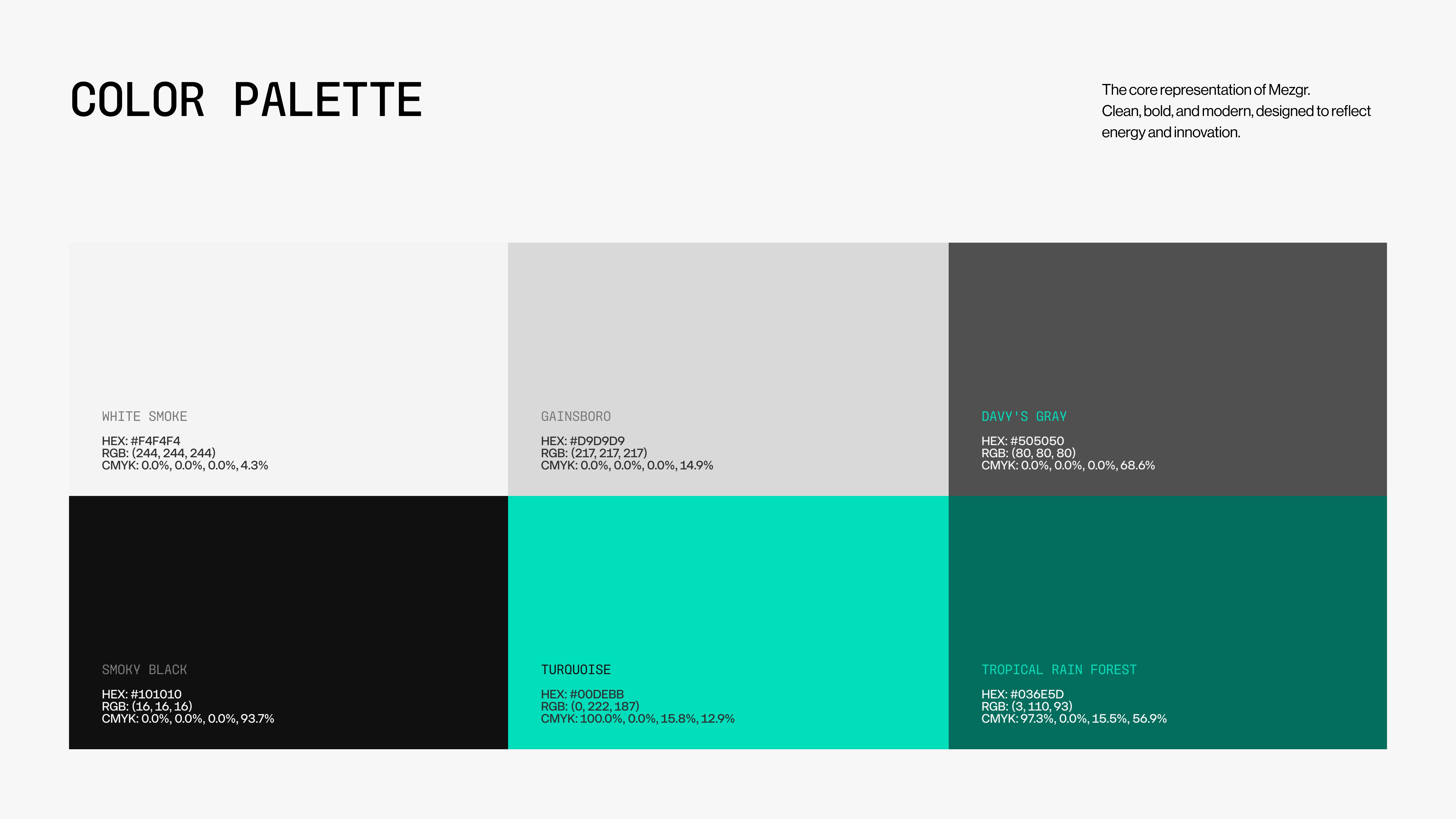 Mezgr needed a brand identity that matched the ambition of the product something iconic, fast to recognize, and built to stand out across app stores, social media, and pitch decks. We focused on creating a logomark that works at every size from app icon to billboard. The identity system was designed to feel confident and distinct, with a visual language that could scale as the product grew