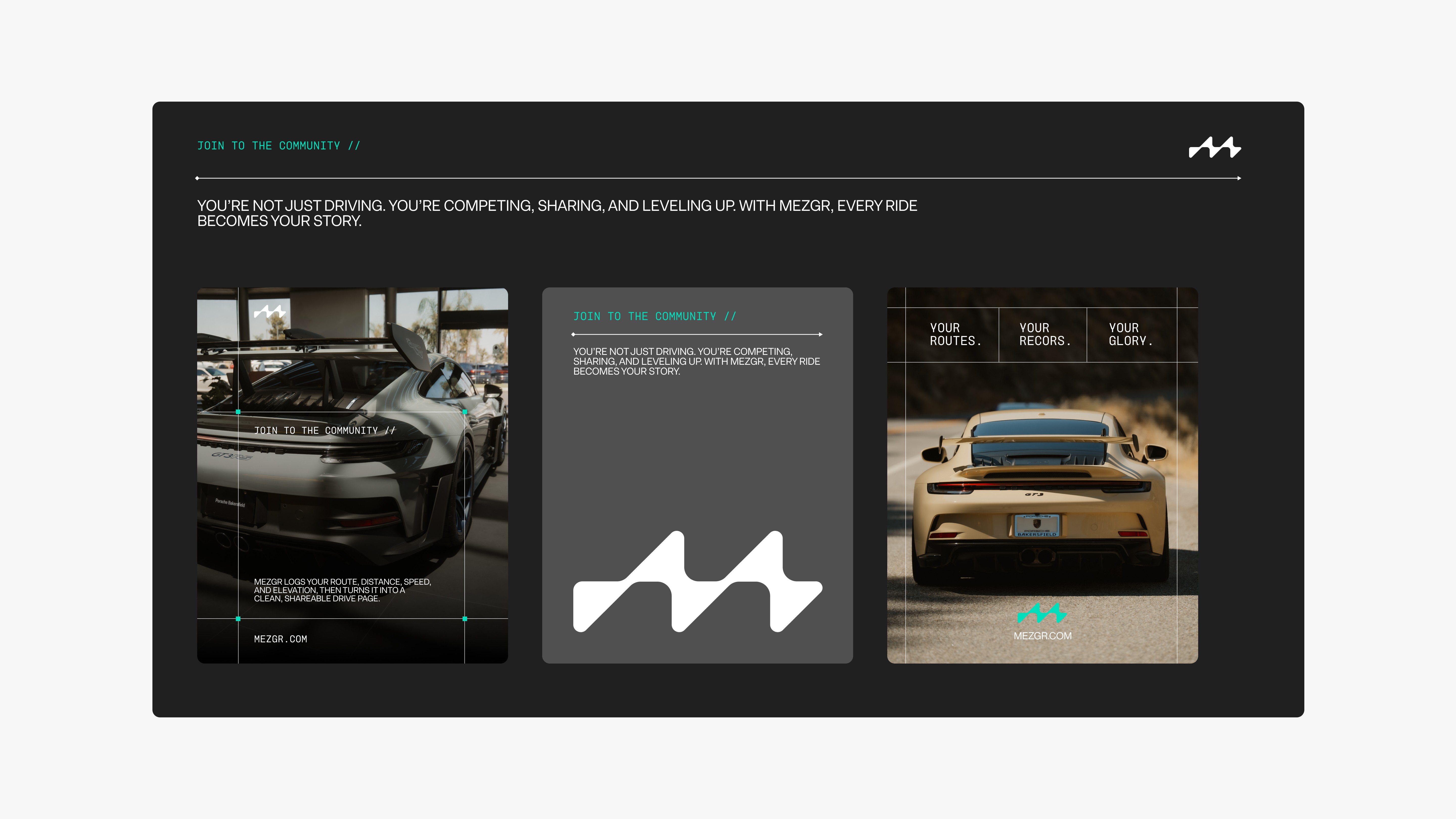 The final identity system gave Mezgr something it didn't have before: instant recognition. The logomark works at every scale. The brand system was built to travel: app store listings, social media, pitch decks, merch. Everything feels like the same brand because everything came from the same system.